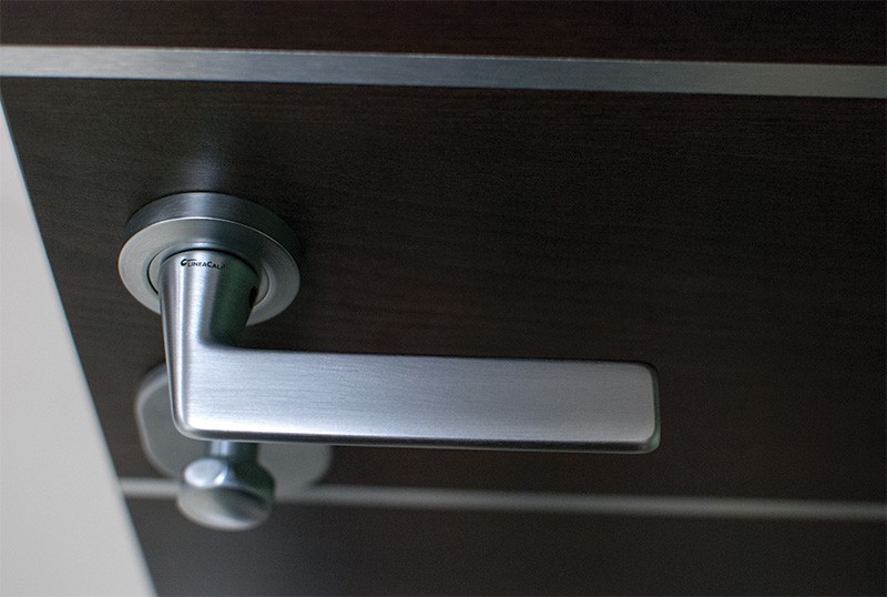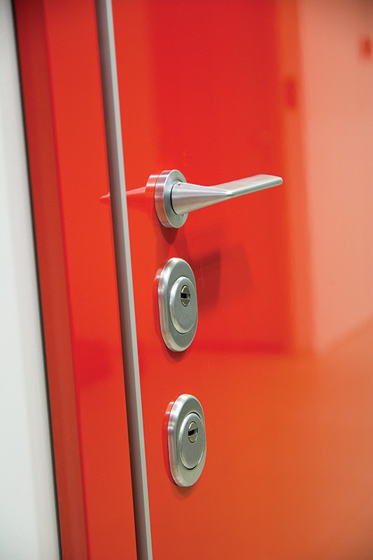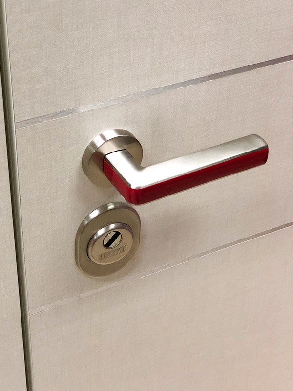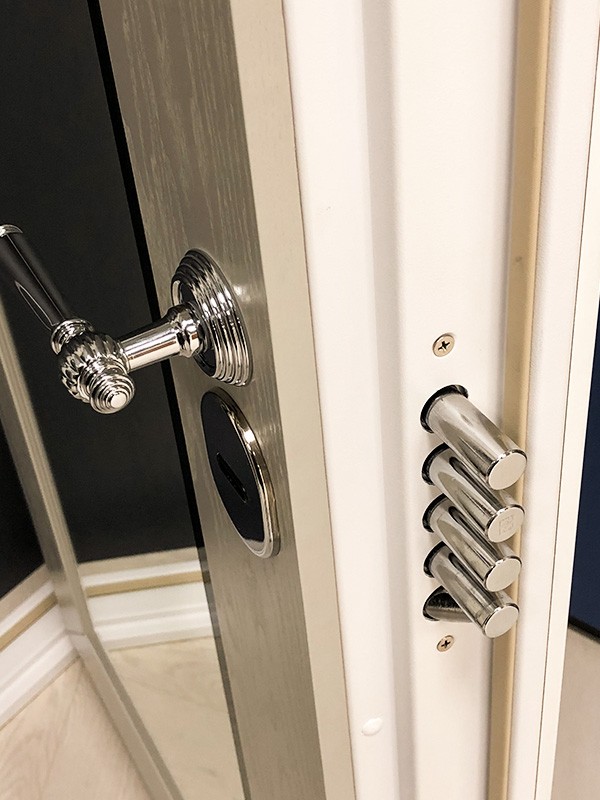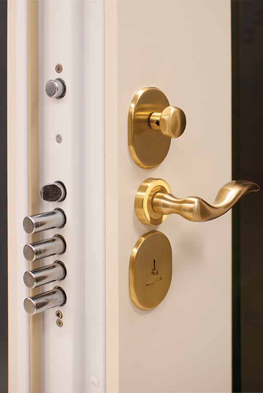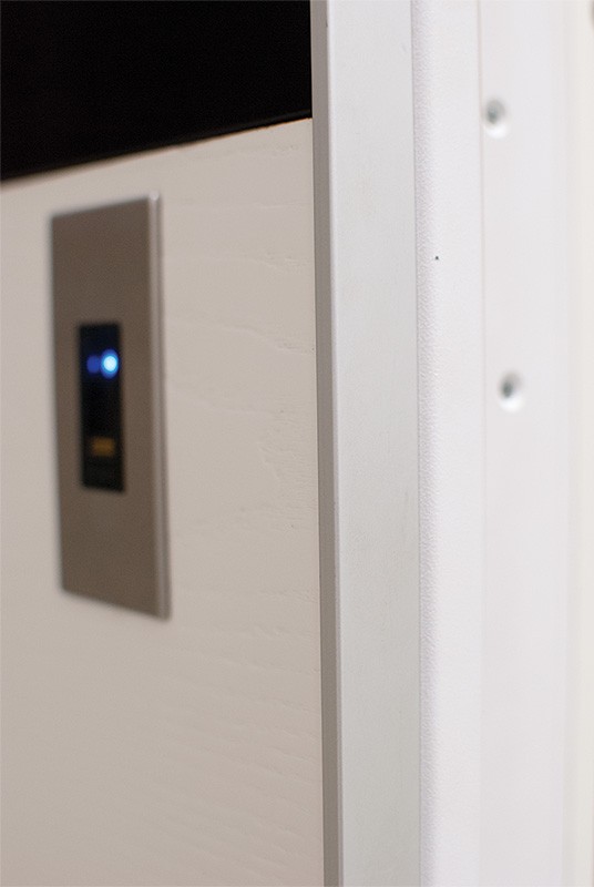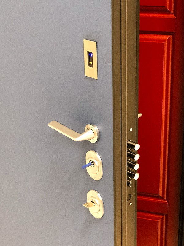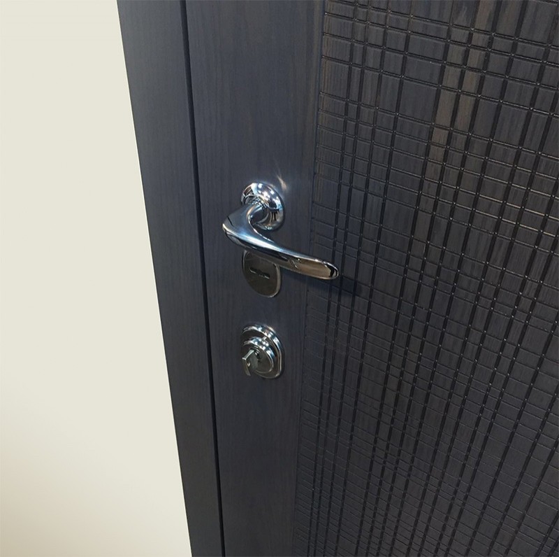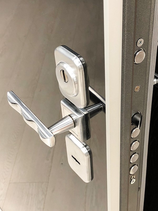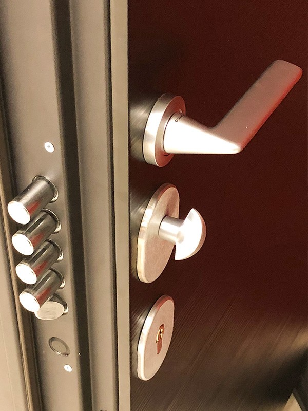 монитор, внутренняя ручка нажимная на планке из фрезерованного алюминия. Замок из нержавейки с функцией дожима двери.