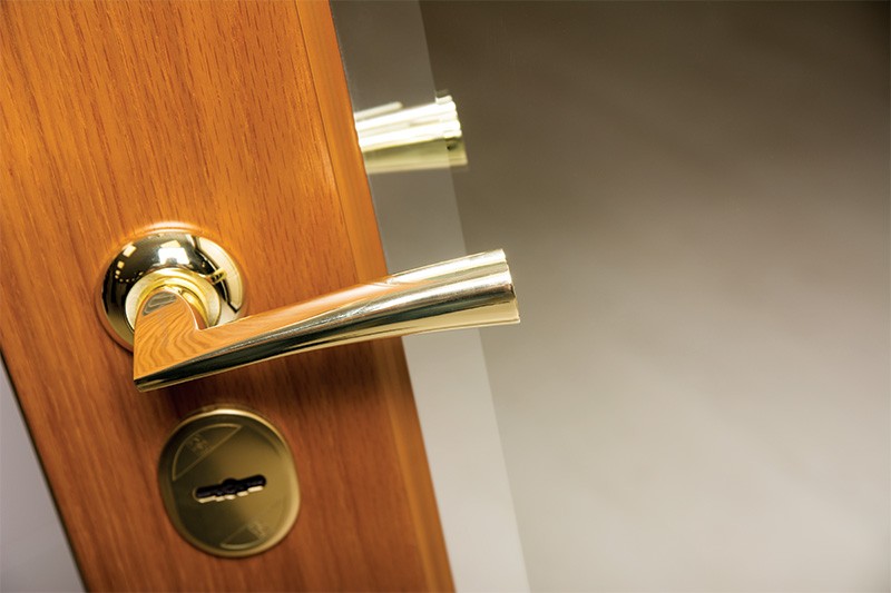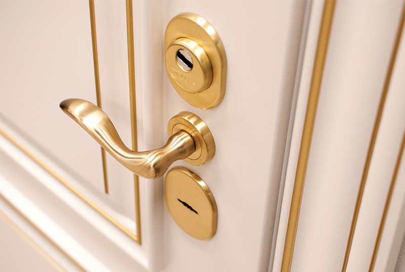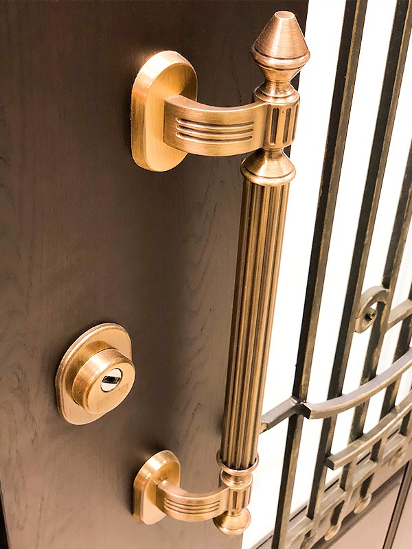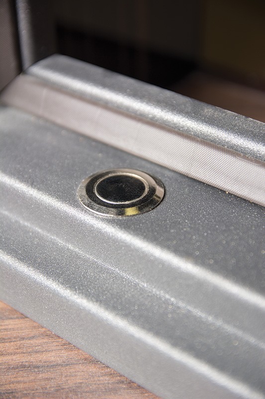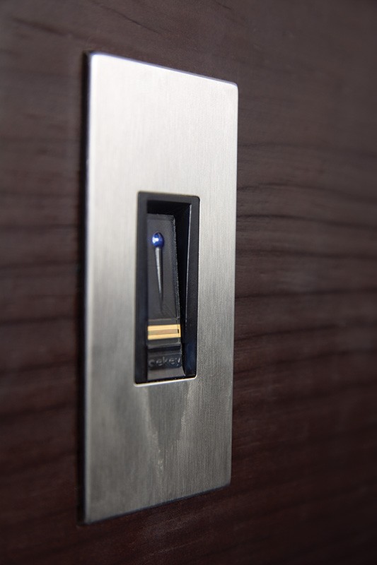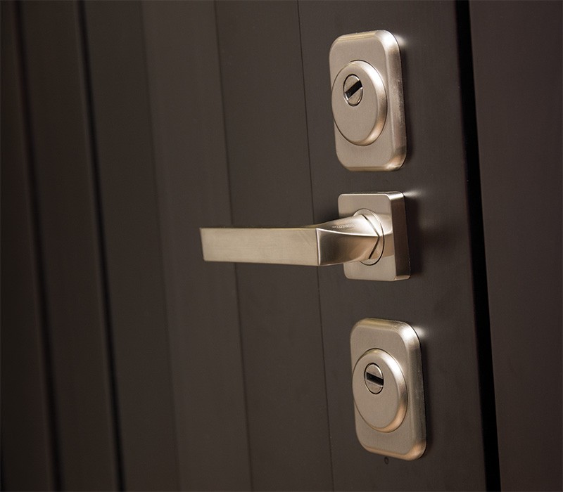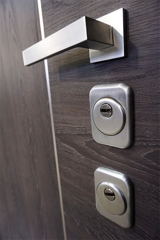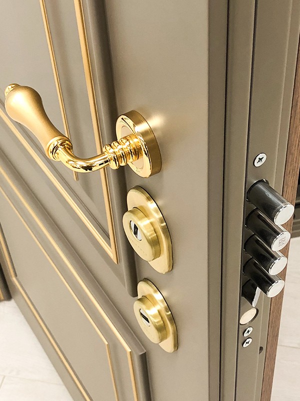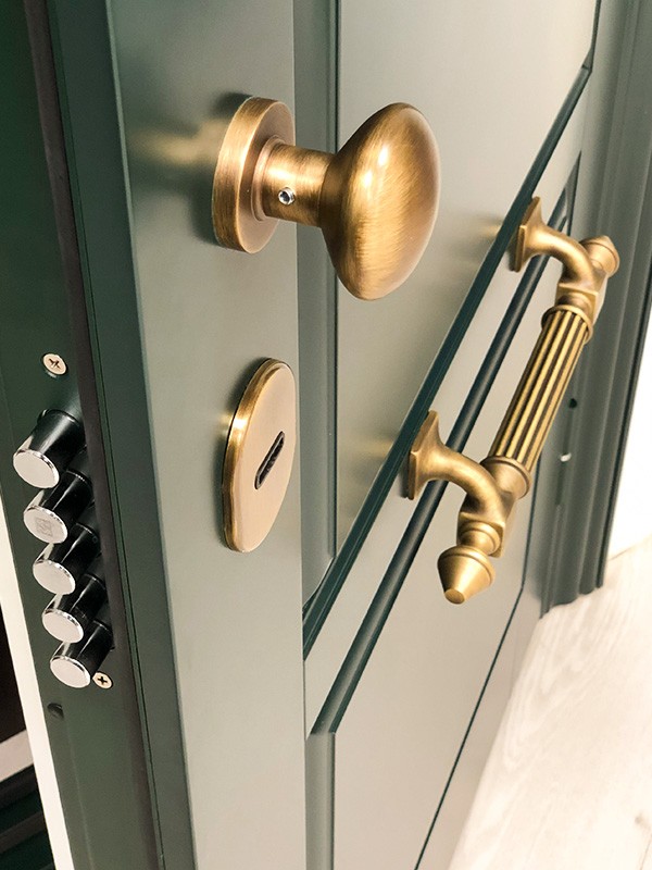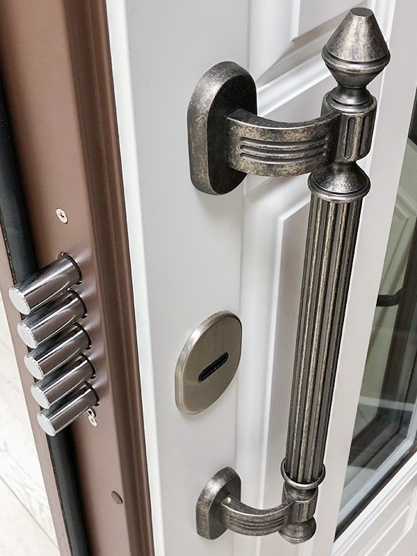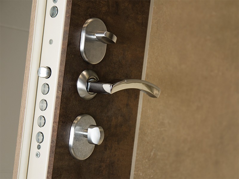 монитор, внутренняя ручка нажимная на планке из фрезерованного алюминия. Замок из нержавейки с функцией дожима двери.